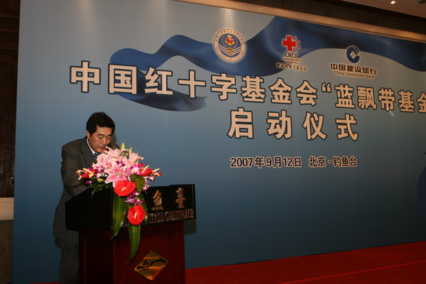 中国红十字基金会“蓝飘带基金”捐赠暨授牌仪式于9月12日在钓鱼台国宾馆八方苑举行,中国红十字会常务副会长江亦曼、中国红十字基金会秘书长王汝鹏、海军后勤部副部长任忠吉、海军总医院院长段蕴铀、中国建设银行股份有限公司批发业务总监顾京圃等出席了仪式,著名歌唱家宋祖英也作为“蓝飘带基金”的“爱心天使”出席了仪式。