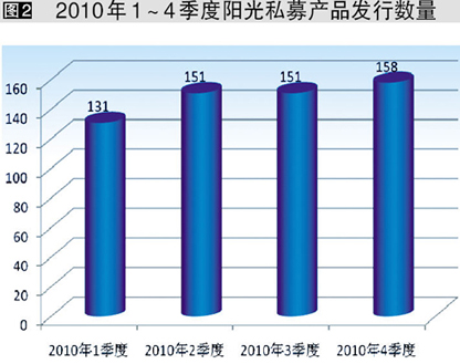 阳光私募产品可分为结构型与非结构型。历年来,非结构型阳光私募是阳光私募市场的主体,且自2009年以来其发展速度明显快于结构型。其中,2010年第四季度共发行结构型产品51款,而非结构型产品却发行107款,是前者的2倍多。