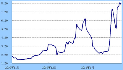 货币市场:假日效应和央行紧缩性货币政策的叠加影响使银行间资金面持续紧张,7天回购利率始终维持在7.5%以上的高点