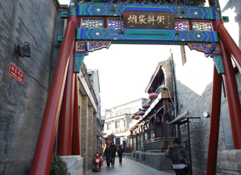 烟袋斜街,位于北京市西城区地安门外大街北端西侧,西口在银锭桥头,东口在鼓楼前方,明朝属日忠坊管界,清朝属正黄旗辖区。