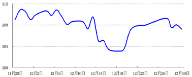 货币市场:虽然央行公开市场小幅净投放,但跨年资金面仍然较为紧张,周五7天回购利率报收于5.6014 %,较前一周上升187bps
