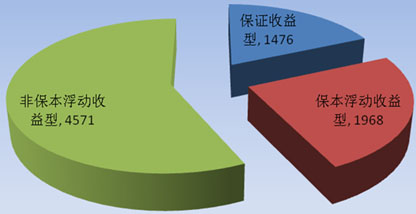 从风险收益特征看,本季度保证收益型、保本浮动收益型与非保本浮动收益型理财产品的绝对发行量均较上季度有所增加,但市场占比有增有减。其中,保本浮动收益型增幅最大,发行1968款,同比增长107.38%;市场占比24.55%,同比增加逾7个百分点。非保本浮动收益型的绝对发行量依旧最大,发行4571款,同比增长35.56%;市场占比57.03%,同比减少近4个百分点。保证收益型不管是绝对发行量还是市场占比均让位于保本浮动收益型而退居第三,发行1476款,同比增长21.49%;市场占比18.42%,同比减少3.5个百分点。