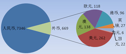 币种分布上,新发的8015款涉及的仍然是人民币、美元、澳元、欧元、港币、英镑、日元及加元。其中,人民币产品不仅绝对发行量第一,而且环比增幅最大,共发行7346款,环比增长近5成;市场占比91.65%,同比增加1.33个百分点。