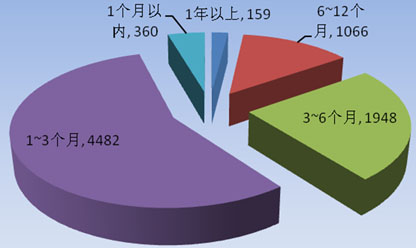 期限分布上,各期产品的发行量较上季度均有所增加,其中1-3个月期依然是市场主体,共发行4482款,同比增长超41%;市场占比55.92%,同比减少近2个百分点。受限银监会201111月中旬叫停1个月以内的超短期理财产品的规定,该类理财产品增幅最低,发行360款,同比增长21.21%;市场占比4.49%,同比减少近1个百分点。另外,3-6个月期产品发行1948款,环比增长670款;6个月-1年期产品发行1066款,环比增加389款;1年期以上产品发行159款,环比增加50款。