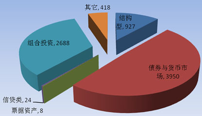 组合投资类产品发行2688款,同比增长10.75%,但市场占比由43.82%下降至33.54%。所谓组合投资类就是将理财资金按一定比例投资两种或两种以上的资产,这些资产包括信贷资产、信托贷款、股票、基金、债券和货币市场工具等。组合投资利于分散理财资金风险,但其对银行要求较高,一是要求银行拥有大量的不同种类的资产,二是要求银行具有对这些错配以及预期收益的能力。所以,这类产品主要由管理能力较强的国有银行、股份制银行以及部分城商行发行。