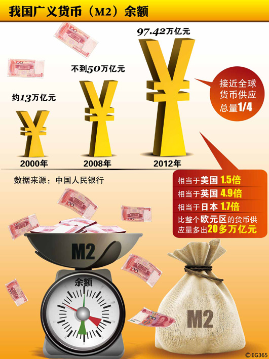 万亿元,突破百万亿元已没有悬念。且该数据已接近全球货币供应总量的四分之一,目前,中国已成为全球货币存量第一大国。