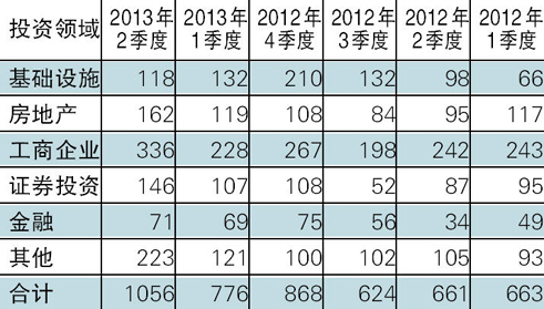 表1 2012年第1季~2013年第2季集合信托产品投资领域分布(单位:款)