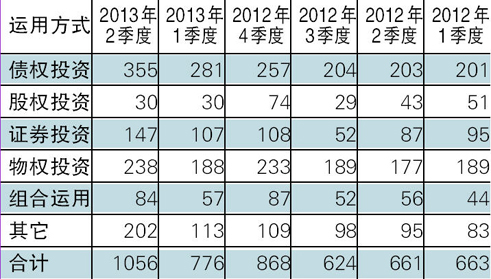 表2 2012年第1季~2013年第2季集合信托产品运用方式分布(单位:款)