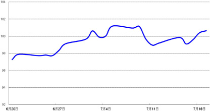 债券市场:上周,虽流动性已逐步回归正常态势,但由于中国宏观经济预期不甚明朗,再加上中长期品种一级招标结果亦不理想,带动二级市场长端抛压较为沉重,银行间债市现券走势较为疲软,收益率震荡走升。相应中债总财富指数下降0.31点至145.14。