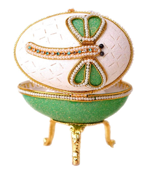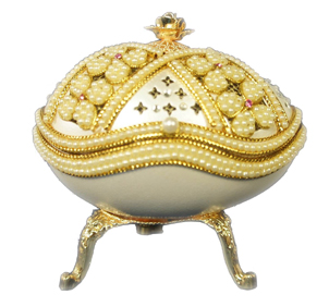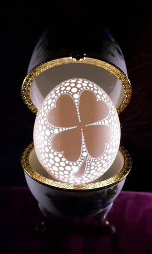 事实上,蛋雕的历史并不长,但其影响却源于公元六世纪的彩蛋。在基督教传入欧洲后,约在中世纪时代,开始有人将鸵鸟蛋予以彩绘装饰,取其具有“新生”、“重生”之意,进而使它成为复活节的装饰品,这种习俗迄今仍流行于欧美各国深受基督教影响之地区。但将装饰蛋提升至艺术品境界的功臣,则非俄国的Faberge家族莫属。公元1884年Faberge家族为沙皇亚历山大三世设计了第一款的“皇家复活蛋”,随即被指定为皇室御用品珠宝商。其后接连不断完成的皇家复活蛋系列产品,使装饰蛋成为举世皆知的艺术品,所创造的豪华风格与民间彩绘蛋艺术相结合,形成今日欧美地区装饰蛋之独特风格与流行。其作品至今依然令人望其项背而难及,有时候在拍卖会上出现,也均以惊人的高价被拍走,成为了艺术蛋的精品。
