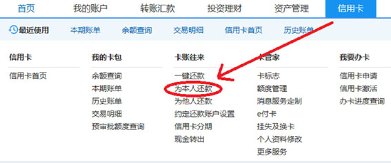 客户问:我想通过个人网银为本人信用卡还款,如何办理呢?