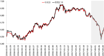 二是市场错判了监管机构的介入力量。我们发现,监管机构对人民币走势基本上为回归中性的相机抉择,即:人民币贬值预期升温→调控→人民币走势稳定→放松调控→人民币贬值预期升温。因此,在年初市场普遍预期人民币将跌破“7”整数关口,我们看到1月人民币逆市上涨。2-5月,人民币持续横盘,市场开始纷纷猜测人民币是否要酝酿下一波大跌,贬值预期重燃,5月25日,央行便再度改革中间价定价机制,引入“逆周期因子”,实际上增强了央行对中间价的把控能力,也增加了市场对人民币汇率稳定的预期。