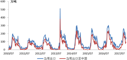 中国需求一直占据全球大豆贸易的6成以上,中粮集团油籽加工部相关人士认为2018年中国的豆粕需求将保持高速增长态势,他预测2018年中国将有1亿吨大豆进口,这一预测数据高于中国农业部预测的9597万吨以及USDA月报中预测的9700万吨。USDA预计,十年内中国进口将达到1.21亿吨/年,相当于在目前规模上再增长30%。