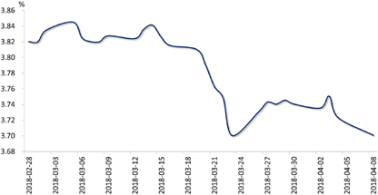 债券市场:尽管3月官方制造业PMI为51.5,好于预期;且上周财政部公告称将招标发行450亿元3年期和450亿元7年期国债,创单期国债最大发行规模,增加一级市场供给压力。但流动性整体宽松,叠加中美贸易战持续发酵带动避险情绪升温、一级市场配置需求旺盛、美债收益率下行,10年期国债收益率下行。截至上周日,10年期国债收益率较前一周五下行4BP至3.70%。