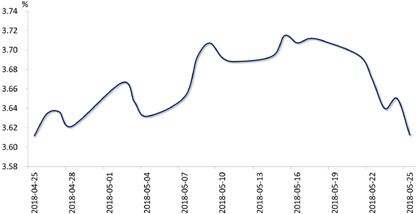 货币市场:由于月末临近,加之5月底前企业需要清缴上年度企业所得税,7天回购利率震荡上行。截至上周五,7天回购利率较前一周上行75BP至3.57%。