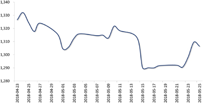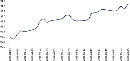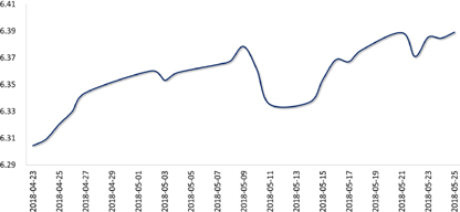 上周,欧洲经济数据疲弱,市场对欧央行退出宽松的预期进一步降温,打压欧元,推动美元上涨。但随后美联储公布偏鸽派的会议纪要,加之特朗普一度扬言要取消与金正恩的会面,令美元涨势放缓,周五收于94.27,当周累计上涨0.62%。在客盘结汇需求支撑下,人民币汇价跌幅相对较小,周五收于6.3891,当周累计下跌0.21%。