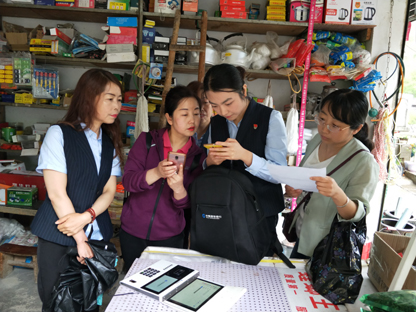 甘肃省陇南分行工作人员为扶贫村裕农通业主办理聚合支付业务。■ 赵宏洲/摄