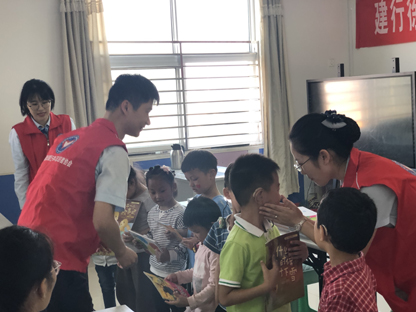 “国旗红红的,星星黄黄的,挂得高高的,心里甜甜的。”孩子们清脆的歌声中充满了喜悦,他们在年轻的客户经理带领下,做起了游戏、贴上了国旗贴画,还拿到了喜爱的图书绘本。一位志愿者甚至抱着想家的孩子,用自己的体温温暖了孩子的心。