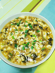 尽管食材普通,制作似乎也并无难度,但要烹制好一碗众口满意的西施豆腐,也非轻易可成。依我多年品尝的经验来看,成败的关键在于最后一步的勾芡,要达到“比浓汤要厚,较羹汁要薄”的境界,分寸拿捏,毫厘不可差,非常考验厨师的功力。
